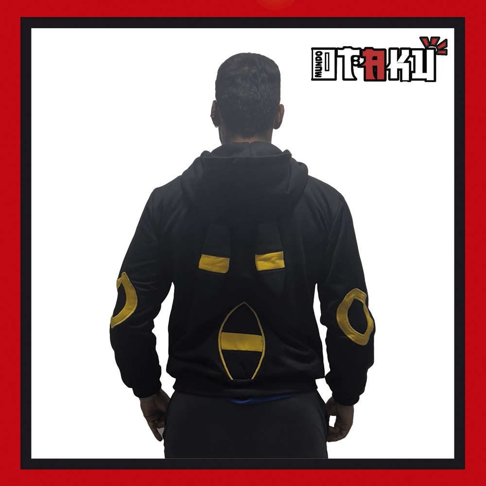 Por otro lado, su diseño unisex lo convierte en una prenda versátil, ideal tanto para uso diario como para eventos especiales, como convenciones, reuniones temáticas o cosplay casual. El color negro característico, combinado con los aros amarillos distintivos de Umbreon, logra un look auténtico que encantará a cualquier fan de Pokémon.