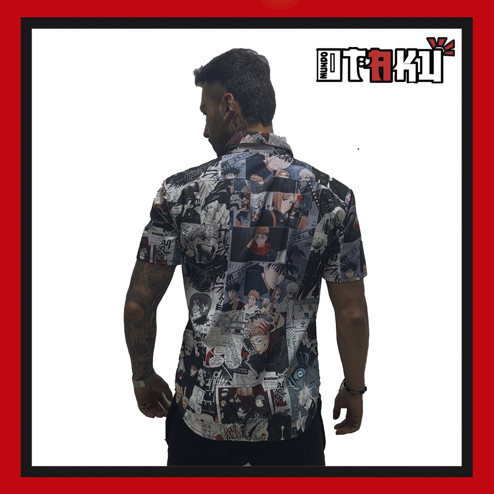 Asimismo, el corte clásico con cuello y botones le da un toque elegante, lo que permite combinarla tanto para looks casuales como para outfits más atrevidos en convenciones, reuniones o salidas con amigos. Por lo tanto, no solo es una pieza cómoda y funcional, sino también un artículo de colección para los amantes del universo creado por Gege Akutami.