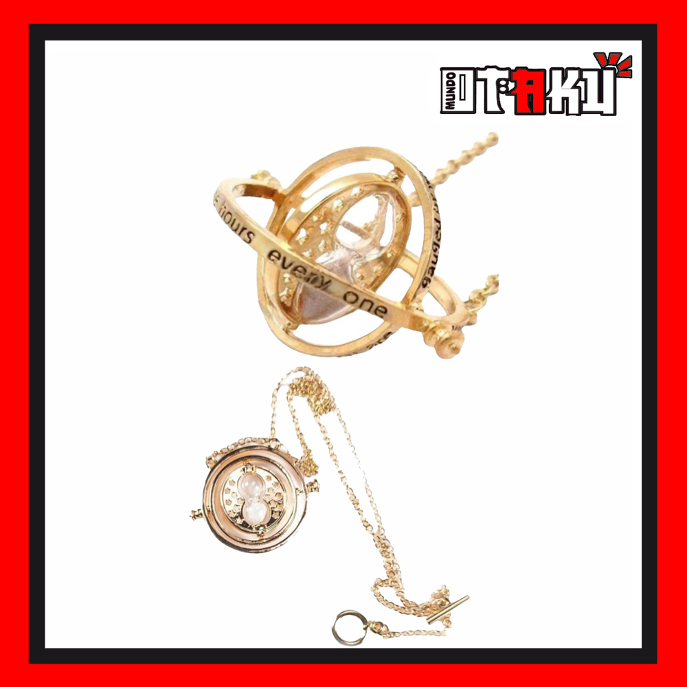 Explora la magia del tiempo con este Collar Gira Tiempo en forma de collar, una pieza inspirada en el legendario artefacto que Hermione Granger utilizó en Harry Potter y el Prisionero de Azkaban. Fabricado en aleación metálica de alta calidad y con un hermoso acabado dorado, este collar captura toda la esencia del universo mágico, convirtiéndose en un accesorio imprescindible para los verdaderos fanáticos de Hogwarts.