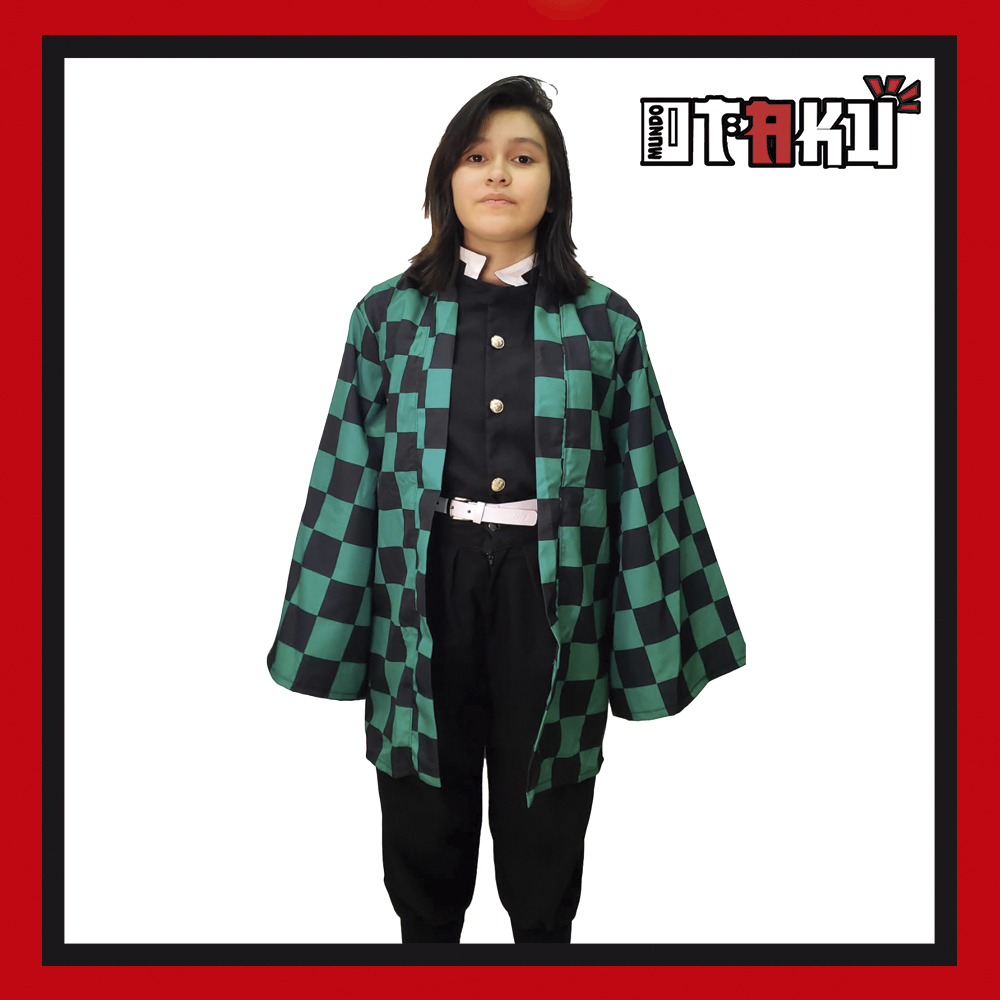 El uniforme de cazador está fabricado en tela Linoflex, lo que garantiza una textura firme, resistente y cómoda para usar durante horas. Además, el Haori de Tanjiro está confeccionado en tela antifluido, con su icónico patrón a cuadros verde y negro, ofreciendo un acabado ligero, suave al tacto y visualmente idéntico al del anime.